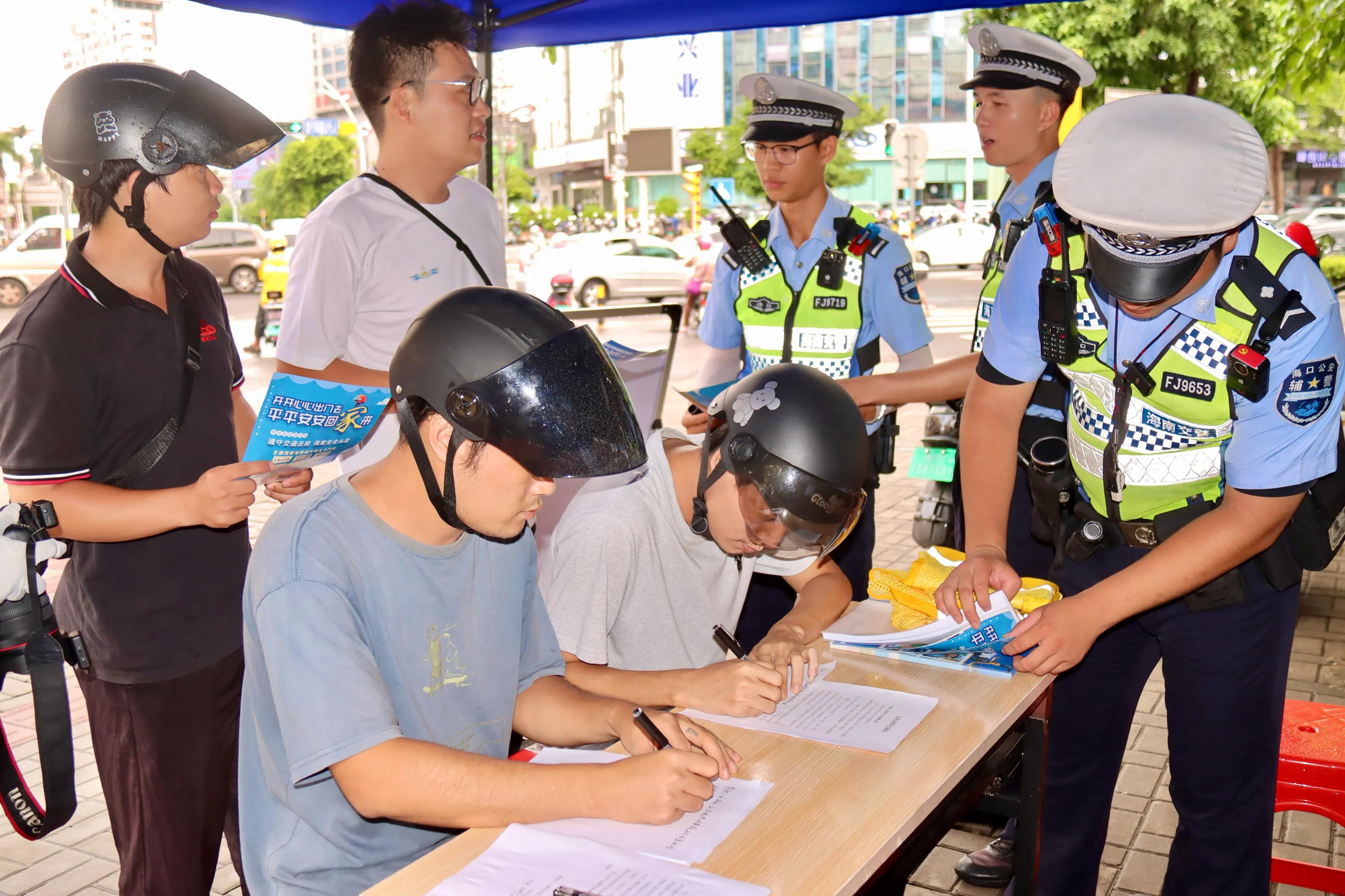 近日,海南海口公安交警在重點路段、商圈和學(xué)校周邊針對摩托車、電動自行車交通違法行為加大執(zhí)法力度,對闖紅燈、逆行、未佩戴安全頭盔、無號牌上路行駛等高頻違法行為開展精準(zhǔn)整治。在嚴(yán)格執(zhí)法的同時,設(shè)立“馬路學(xué)堂”推行“教育免罰”,違法當(dāng)事人可任選觀看警示教育視頻、抄寫交通法規(guī)條文、體驗輔助執(zhí)法中的一種方式完成學(xué)習(xí),簽署文明騎行承諾書后即可免罰,將執(zhí)法現(xiàn)場變?yōu)槠辗ㄕn堂,讓當(dāng)事人深刻認(rèn)識交通安全重要性。