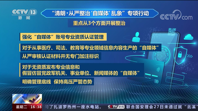 國(guó)家網(wǎng)信辦 強(qiáng)化“自媒體”賬號(hào)專業(yè)資質(zhì)認(rèn)證管理