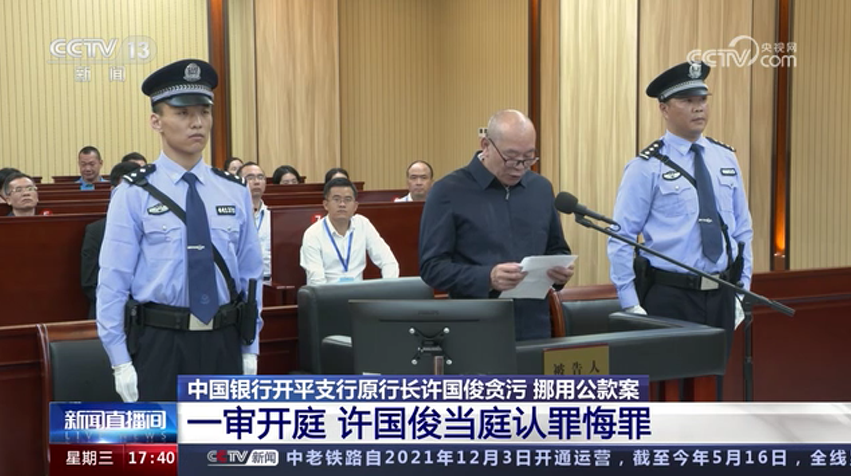 中國(guó)銀行開(kāi)平支行原行長(zhǎng)許國(guó)俊貪污 挪用公款案 一審開(kāi)庭 許國(guó)俊當(dāng)庭認(rèn)罪悔罪