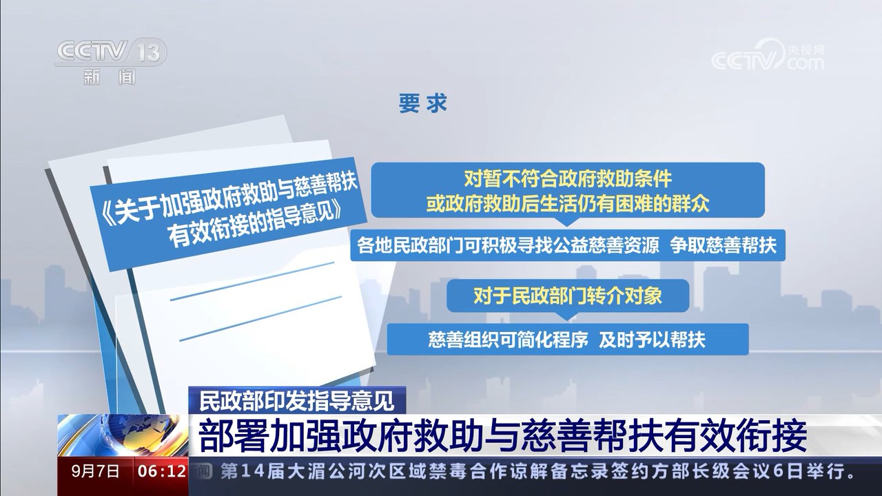民政部印發(fā)指導意見 部署加強政府救助與慈善幫扶有效銜接