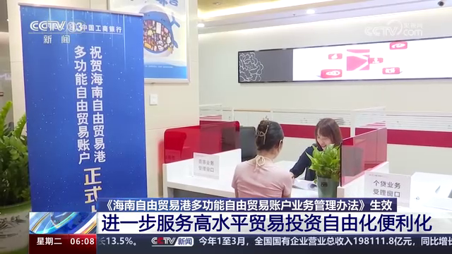 《海南自由貿易港多功能自由貿易賬戶業(yè)務管理辦法》生效 進一步服務高水平貿易投資自由化便利化