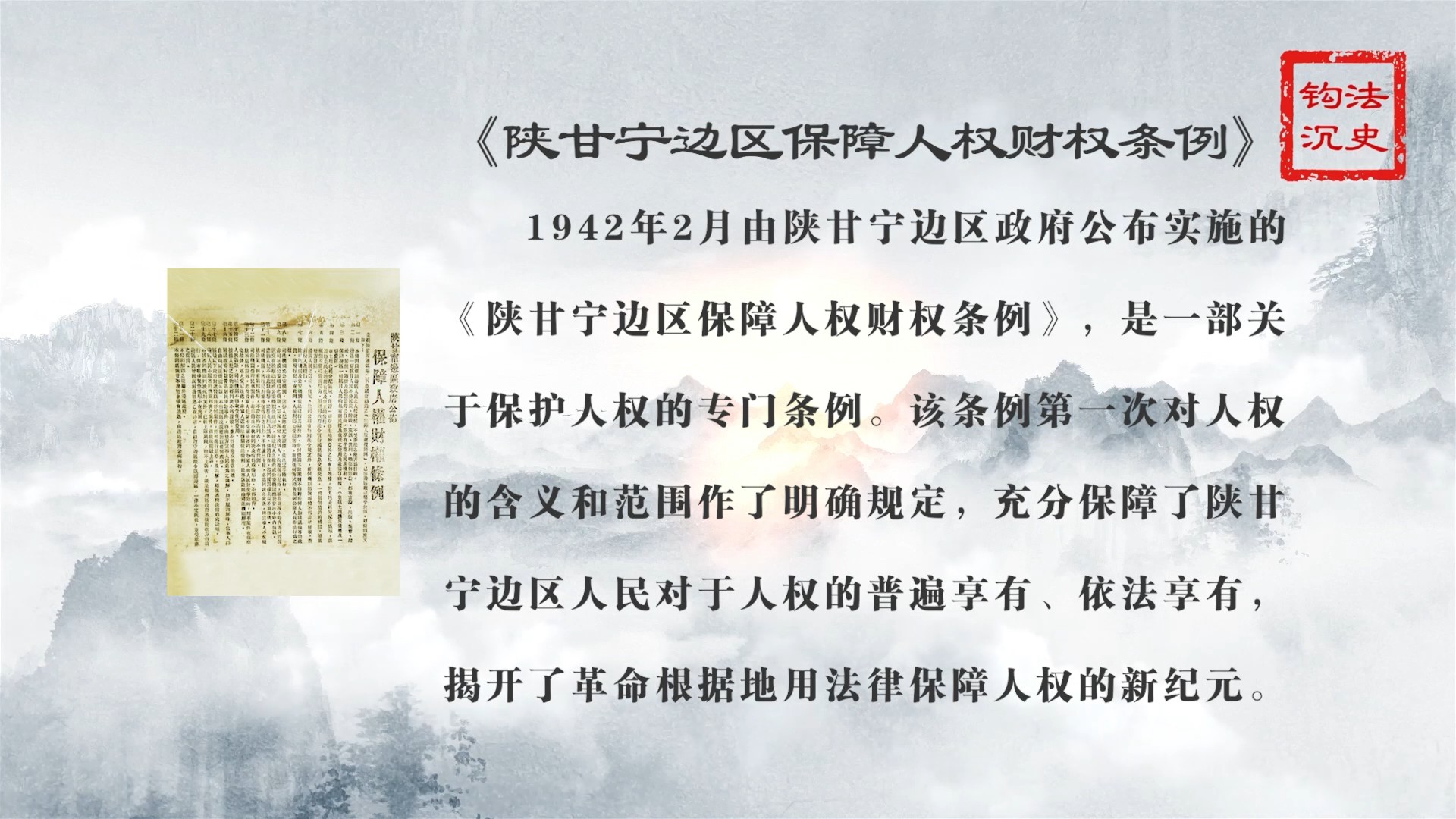 普法短視頻:法史鉤沉——《陜甘寧邊區(qū)保障人權(quán)財(cái)權(quán)條例》