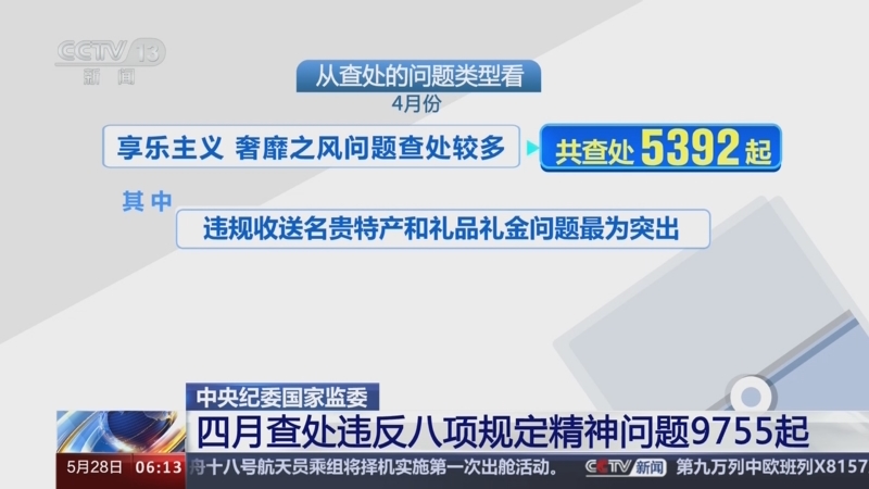 中央紀(jì)委國家監(jiān)委 四月查處違反八項規(guī)定精神問題9755起