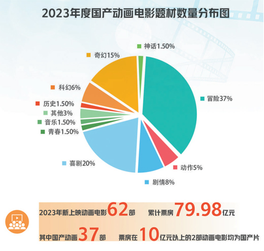 現(xiàn)實(shí)和預(yù)期,給了動(dòng)畫人開拓事業(yè)的底氣。據(jù)不完全統(tǒng)計(jì),2013年,上映33部動(dòng)畫電影,總票房為16.4億元,國產(chǎn)動(dòng)畫占比為38%。2023年新上映動(dòng)畫電影62部,累計(jì)票房79.98億元,其中,國產(chǎn)動(dòng)畫37部(含港澳臺);票房在10億元以上的2部動(dòng)畫電影均為國產(chǎn)片。無論作品數(shù)量還是票房表現(xiàn),國產(chǎn)動(dòng)畫電影都樹立了自己的“主場優(yōu)勢”,也在觀眾中贏得信任與口碑。