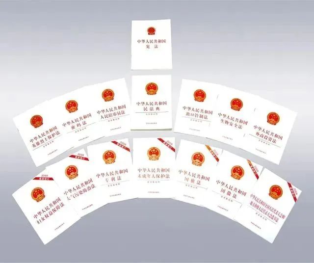 圖為十三屆全國人大及其常委會(huì)制定或修訂的部分法律單行本。