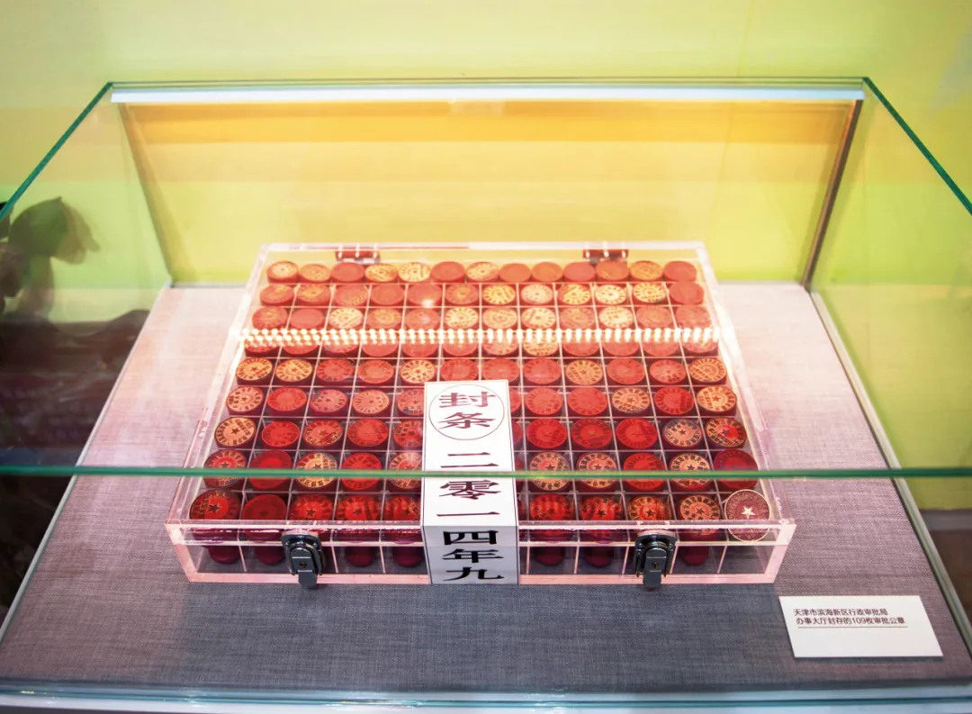 改革和法治如同鳥之兩翼、車之兩輪。必須堅持全面依法治國,在法治軌道上深化改革、推進(jìn)中國式現(xiàn)代化。圖為中國國家博物館收藏的來自天津市濱海新區(qū)的109枚審批公章(資料照片)。 新華社發(fā)
