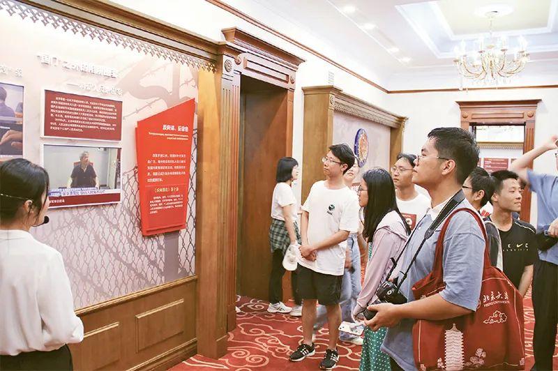 綏芬河國(guó)家安全教育展館面積約1100平方米,由序廳、總體國(guó)家安全觀、無(wú)名豐碑、周恩來(lái)展區(qū)等8個(gè)部分組成,展示了總體國(guó)家安全觀、黨的隱蔽戰(zhàn)線光輝歷史、當(dāng)前斗爭(zhēng)形勢(shì)等內(nèi)容。李大釗、周恩來(lái)等老一輩革命家在綏芬河出入境蘇聯(lián)時(shí)曾秘密下榻于此。作為早期紅色秘密國(guó)際通道、秘密交通線掩護(hù)站點(diǎn),展館建筑如今成為珍貴的紅色革命歷史遺址。圖為2023年8月15日,大學(xué)生在展館內(nèi)參觀學(xué)習(xí)。國(guó)安宣工作室供圖