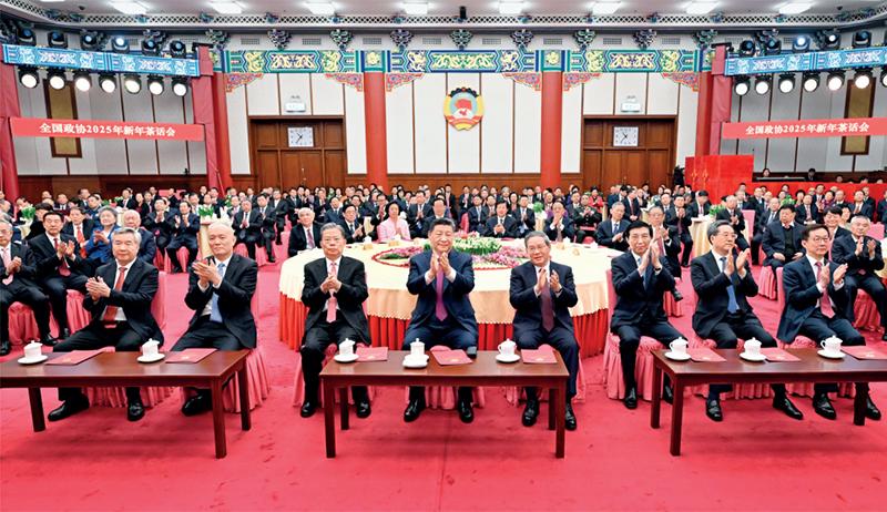 2024年12月31日,全國政協(xié)在北京舉行新年茶話會。黨和國家領導人習近平、李強、趙樂際、王滬寧、蔡奇、丁薛祥、李希、韓正出席茶話會并觀看演出。 新華社記者 謝環(huán)馳/攝