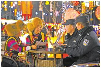 圖為青海省海東市互助土族自治縣公安局東和派出所民警近日在油嘴灣景區(qū)開展普法宣傳。 費照林 攝