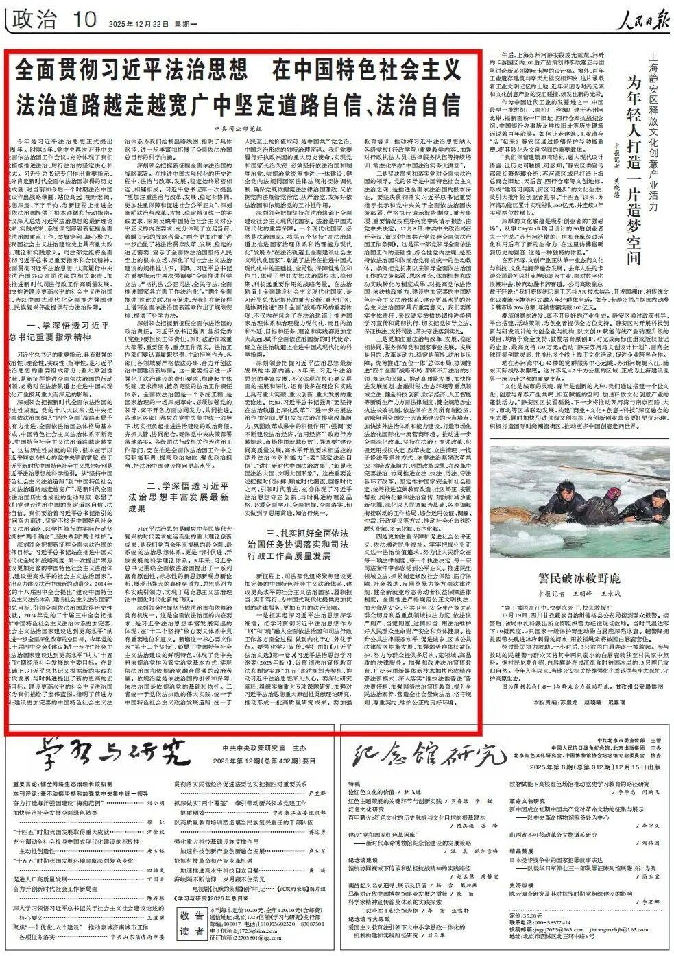 一是抓實(shí)走深習(xí)近平法治思想深學(xué)細(xì)悟。把學(xué)習(xí)貫徹習(xí)近平法治思想作為“綱”和“魂”融入全面依法治國和司法行政工作各方面全過程,做到內(nèi)化于心、外化于行。要強(qiáng)化學(xué)習(xí)宣傳,學(xué)好用好《習(xí)近平法治文選》第一卷、《習(xí)近平法治思想學(xué)習(xí)綱要(2025年版)》,以貫徹法治宣傳教育法和制定實(shí)施“九五”普法規(guī)劃為契機(jī),推動習(xí)近平法治思想深入人心。要深化研究闡釋,組織實(shí)施重大專項(xiàng)課題研究,加強(qiáng)對習(xí)近平法治思想重大原創(chuàng)性貢獻(xiàn)理論研究,推動形成一批高質(zhì)量研究成果。要加強(qiáng)教育培訓(xùn),推動將習(xí)近平法治思想納入各級黨校(行政學(xué)院)重要教學(xué)內(nèi)容,加強(qiáng)對行政執(zhí)法人員、法律服務(wù)隊(duì)伍等持續(xù)培訓(xùn),常態(tài)化舉辦“中國法治實(shí)務(wù)大講堂”。