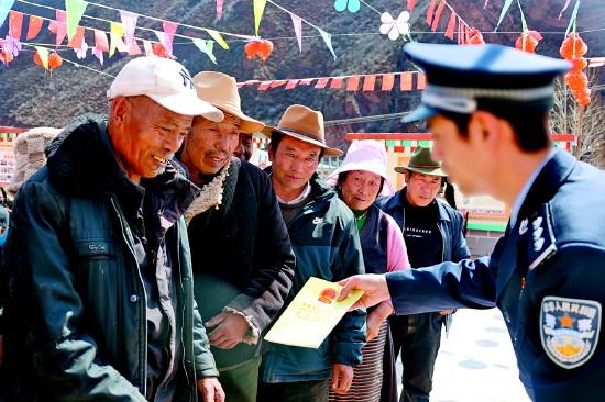 圖為西藏國(guó)安干警向藏區(qū)群眾宣傳國(guó)家安全法律法規(guī)。 (國(guó)安宣工作室供圖)