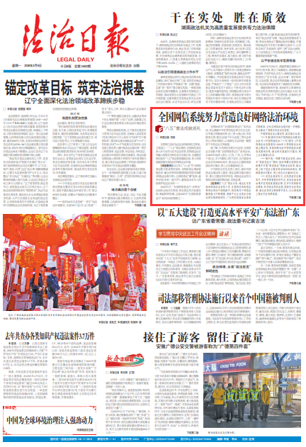 ——充分發(fā)揮中央和地方新聞網(wǎng)站主力軍作用,開設(shè)網(wǎng)絡(luò)普法專題專欄,開展“法治護(hù)我心”“E法護(hù)未來”等網(wǎng)絡(luò)法治主題宣傳,深入宣傳解讀網(wǎng)絡(luò)法律法規(guī)。