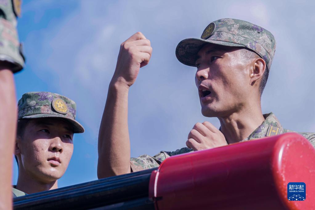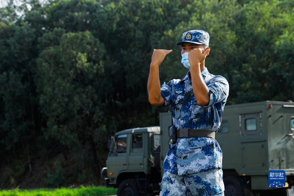 駐香港部隊某團防空營營長王海旭在防空陣地上指揮戰(zhàn)斗裝備進入預定區(qū)域(2020年8月13日攝)。新華社發(fā)(田越洋 攝)