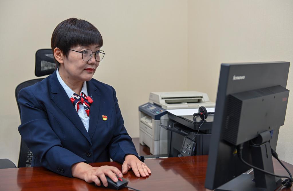 在中國(guó)工商銀行新疆烏魯木齊的一處營(yíng)業(yè)網(wǎng)點(diǎn),李鵬在辦公室辦公(2022年9月24日攝)。新華社記者 郝建偉 攝