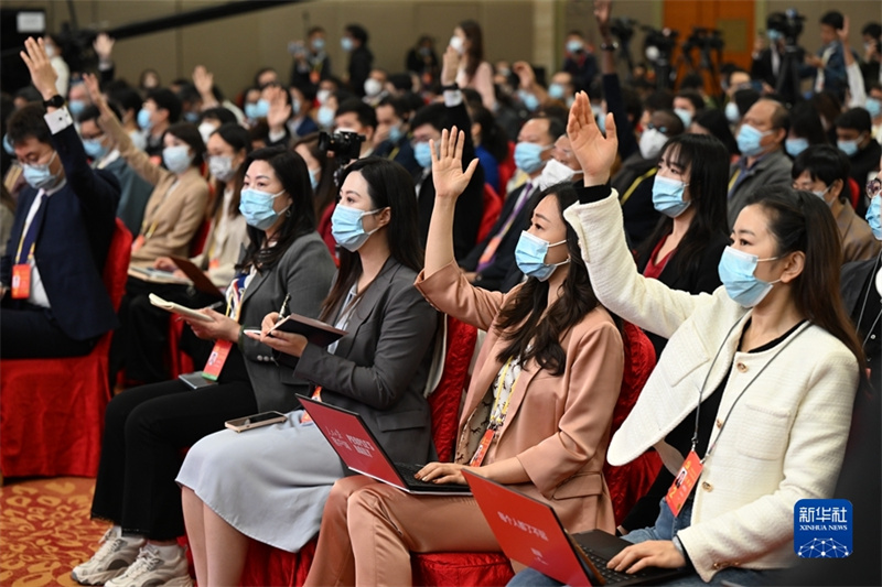 這是記者在分會(huì)場(chǎng)舉手提問。