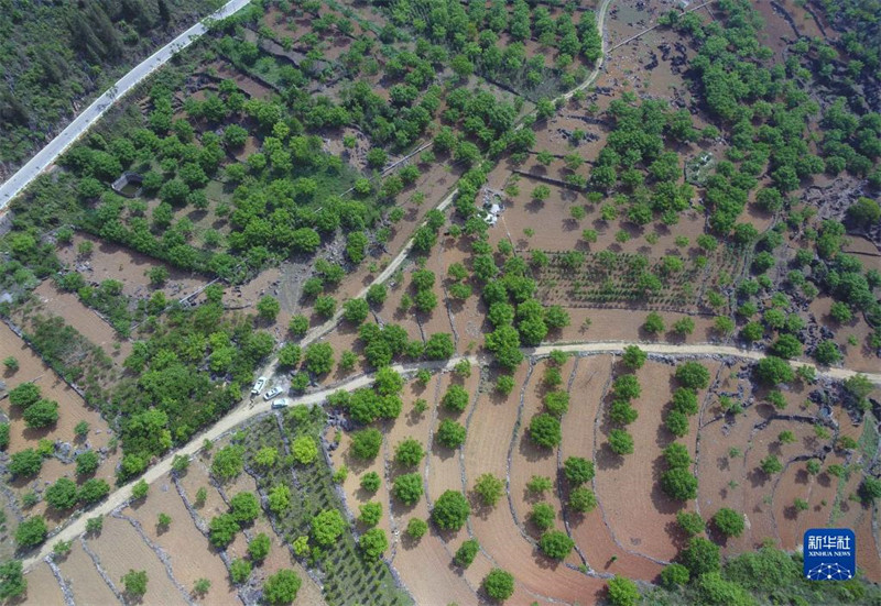 這是云南西疇縣蚌谷鄉(xiāng)木者村的果園(2019年4月17日攝,無人機照片)。新華社記者 楊宗友 攝