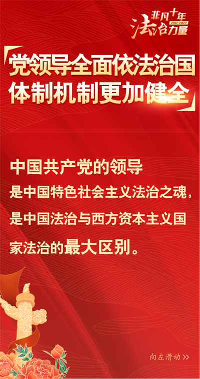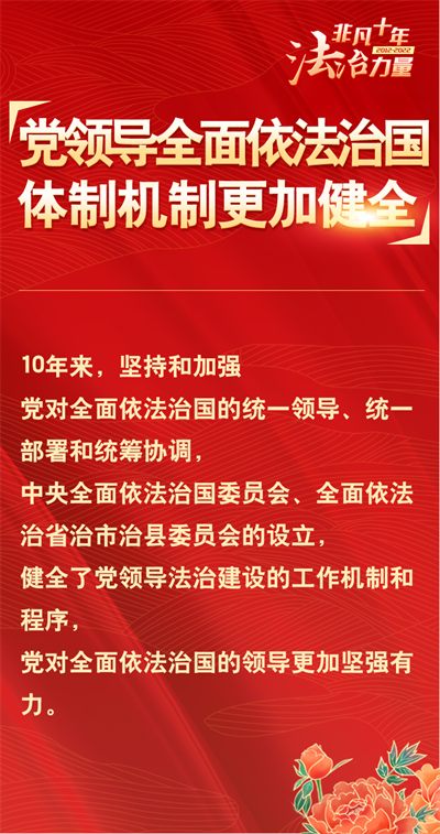 法治網(wǎng)精心策劃制作十期海報,帶您一起領(lǐng)略非凡十年的法治力量!今天為您奉上第二期“黨領(lǐng)導(dǎo)全面依法治國體制機制更加健全”。